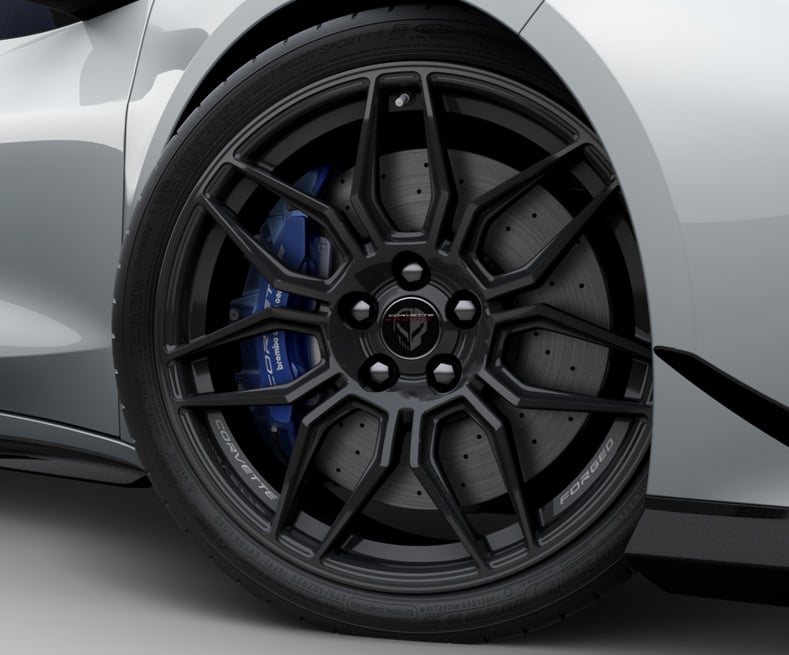 On top of that, every car gets Carbon Flash accents across the ground effects, spoiler, badges, trim and mirrors, a carbon fibre roof, 20-inch front and 21-inch rear spider-design black forged wheels with Corvette Racing “Jake” logo centre caps, blue brake calipers, and a Jake C8.R graphics package across the bonnet and rear panels. There’s also an exclusive Bathurst 12 Hour track decal, so nobody’s going to confuse this with a standard Z06.
