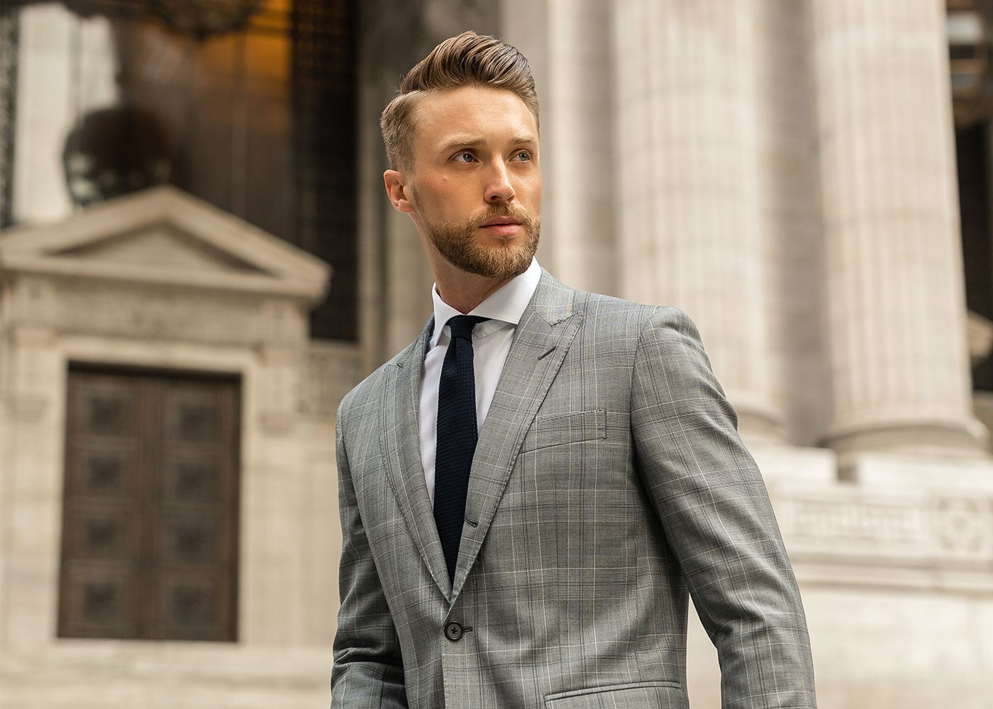 First and foremost, a 100% silk, hand stitched tie is a treasure and point of pride for any modern-day gent. Choose carefully and it’ll be a long-lasting piece that you wear time and time again. Look at colours and patterns that have versatility across your suiting as well. Classics like stripes or even dots in navy are relatively timeless and can be equally at home in a board room as they are at a dinner. Finally, when it comes to seasons, don’t be afraid to dabble with alternative fabrics like worsted wool or even cashmere. These ties require delicate handling but are an elegant contrast in the cooler months. Look at dove greys and earthy tones that reflect the weather outdoors for the ultimate Autumn/Winter look. They can pair up perfectly with navy suits, grey suits of double breasted suits.