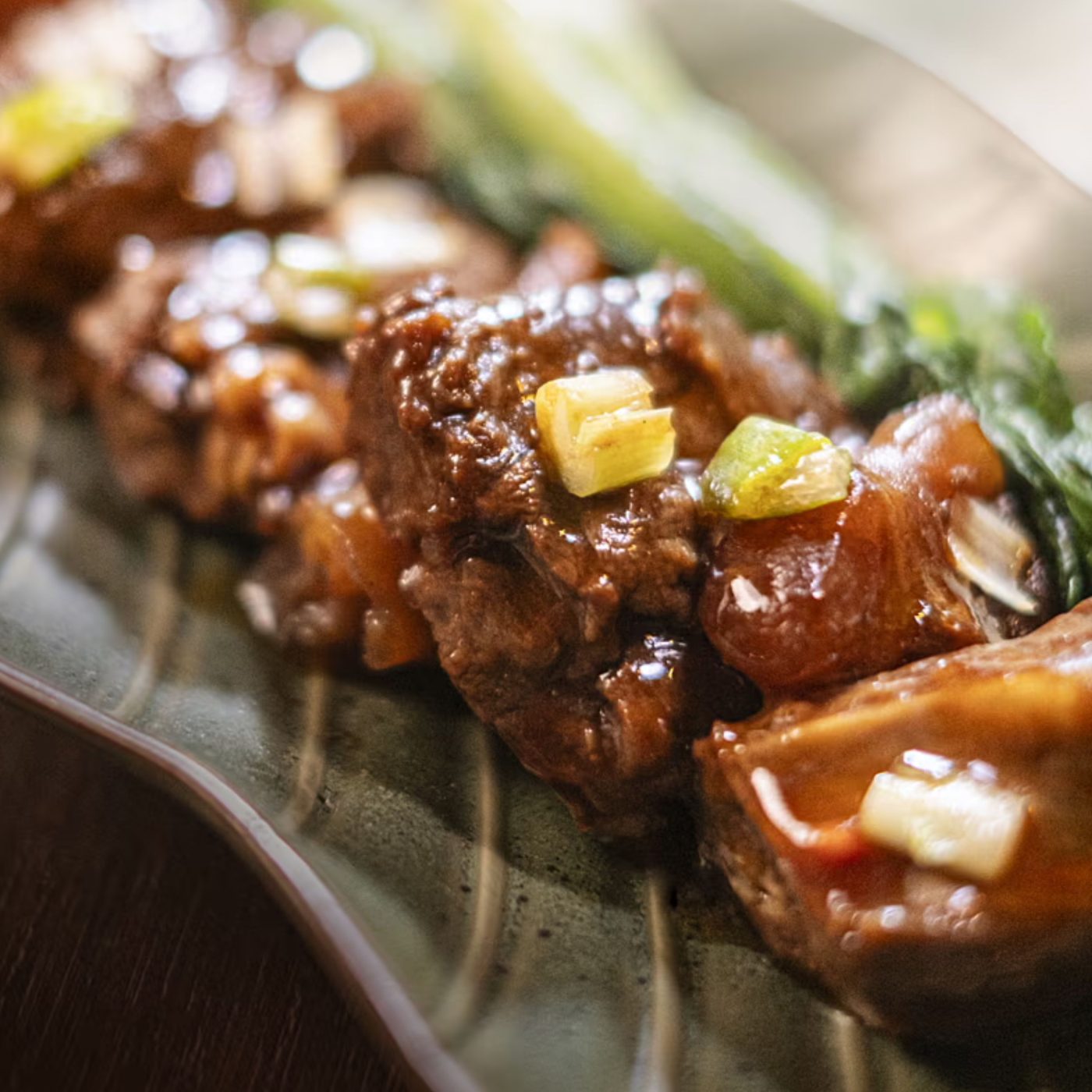 For the main course, I chose the braised beef brisket and tendon in chu hou sauce. The beef fell apart with the touch of the fork, and the chu hou sauce, made from fermented soybean paste, gave off a deep richness that tasted unmistakably like home cooking. It was comfort food, perfectly executed at 30,000ft.