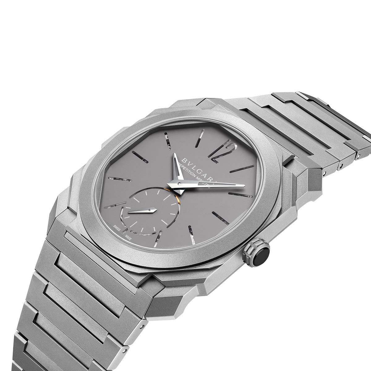 Bvlgari is offering the new 37mm in sandblasted and satin-polished titanium.