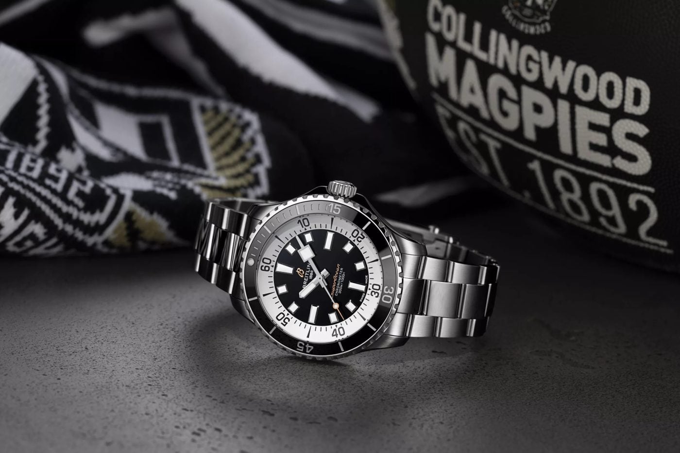 There are watches that divide opinion, and then there’s slapping a Magpie crest on the caseback of a Swiss timepiece. Breitling Oceania has just announced a multi-year partnership with the Collingwood Football Club, and to mark it, they’ve launched the Superocean 44 Collingwood Limited Edition, restricted to just 125 pieces and available exclusively in Australia.