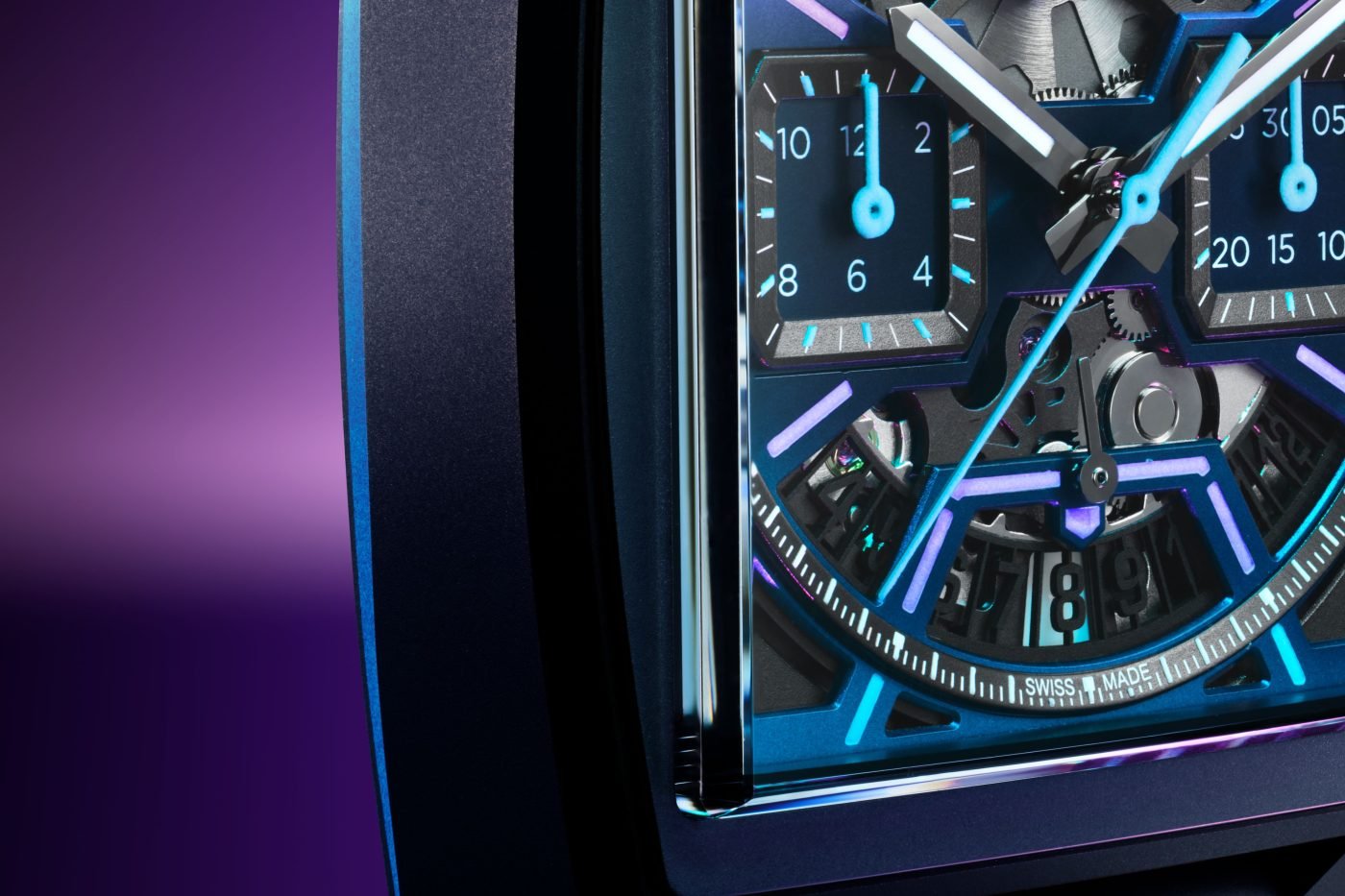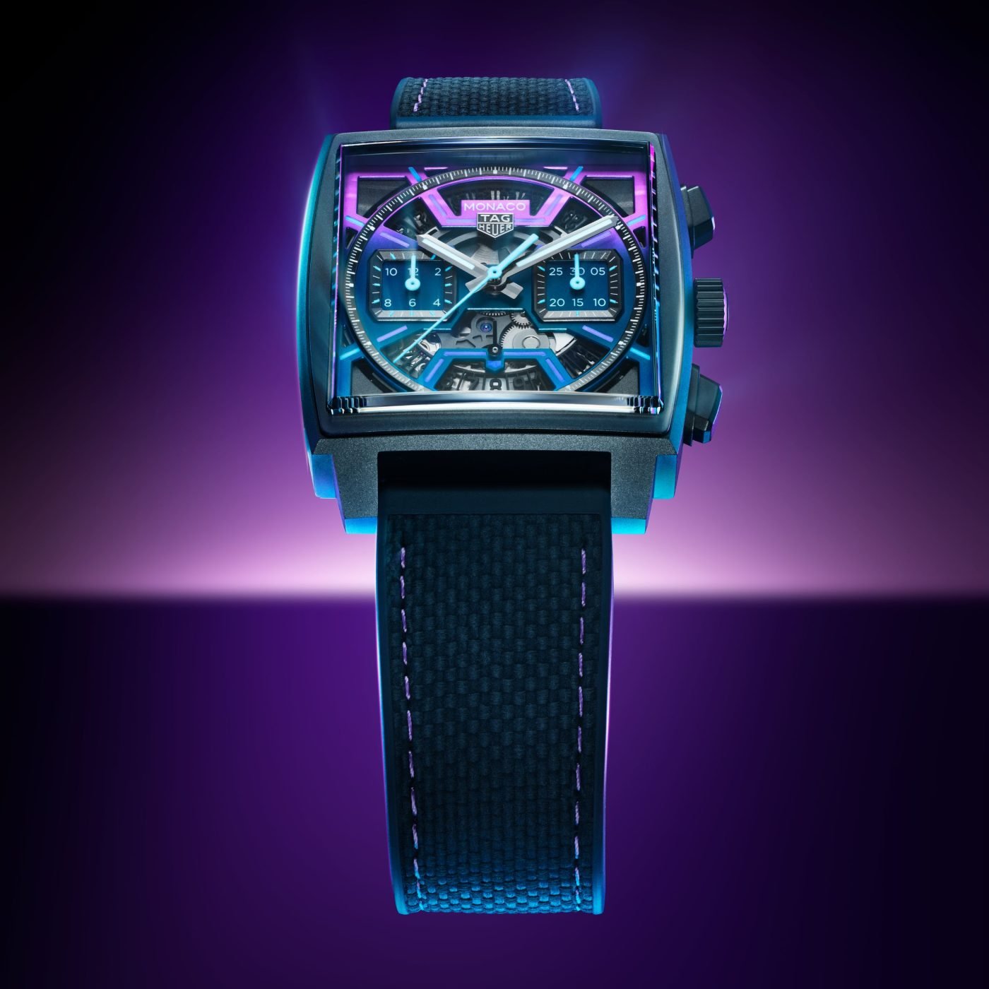 - A new Vegas-inspired Monaco with a violet-to-blue gradient skeleton dial and multi-colour Super-LumiNova.