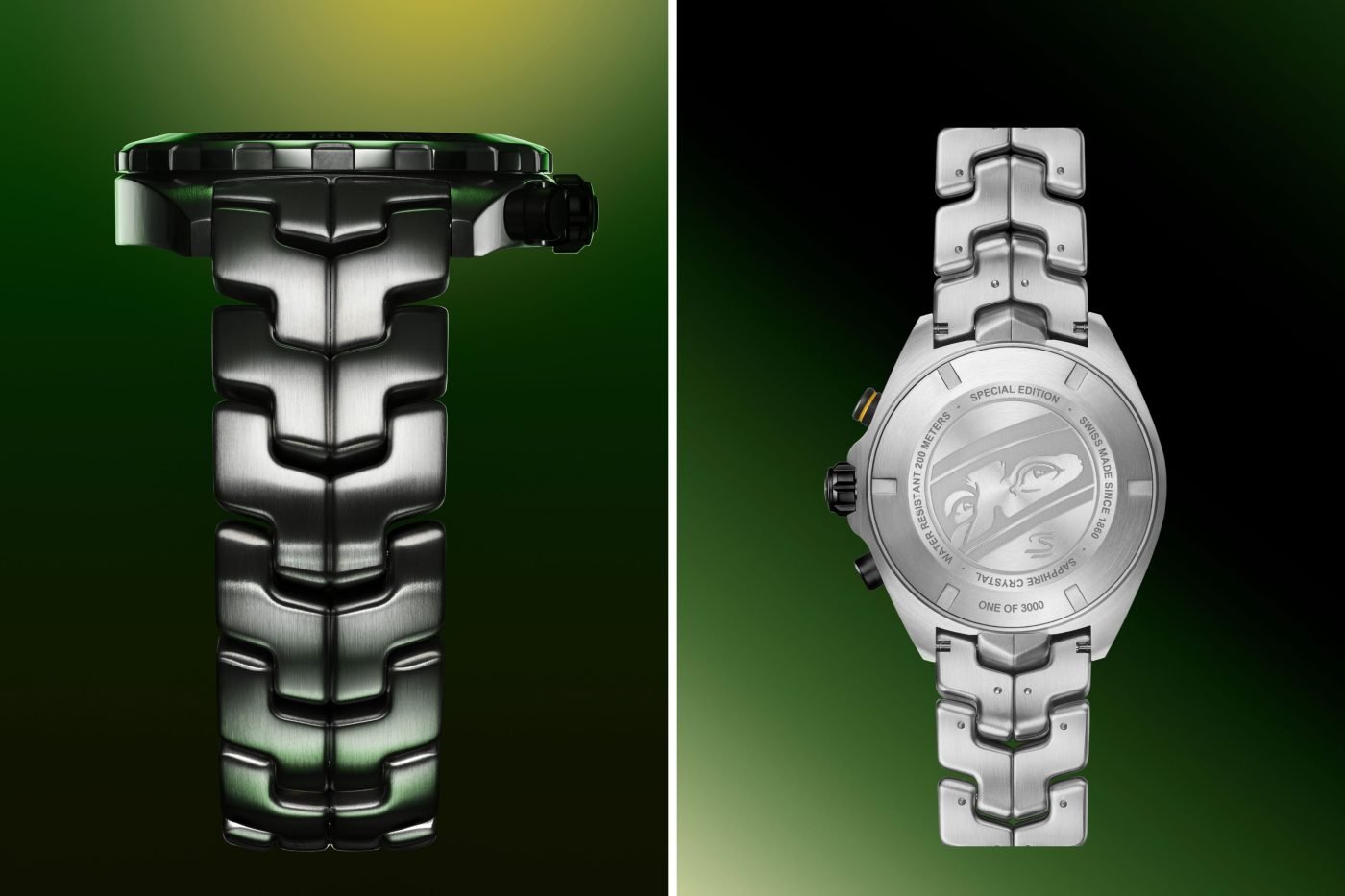 • The 43 mm revives Senna’s iconic S/EL bracelet: a design that defined both his career and TAG Heuer’s racing heritage.