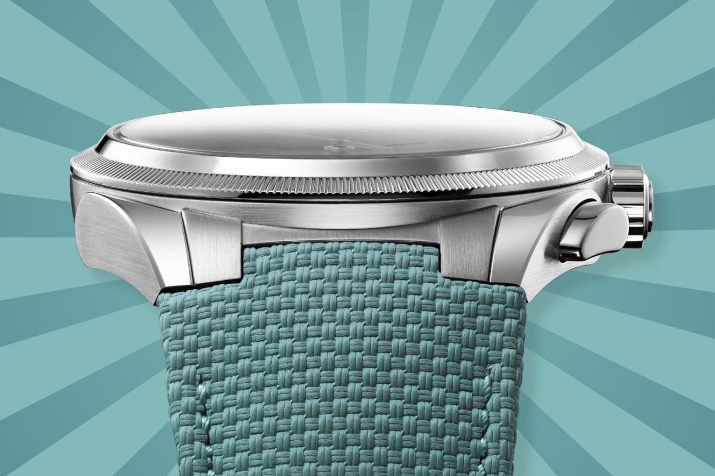 The three sub-dials, along with the rubber strap, come in what the brand calls a “Verzasca” hue. A muted teal-green that reads like river water on an overcast afternoon. It gives the watch a summer-weight personality the existing darker variants don’t quite have.